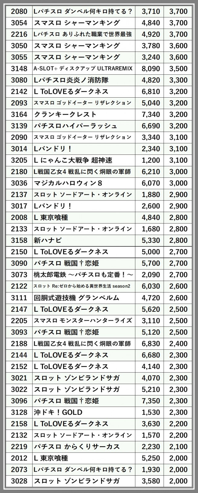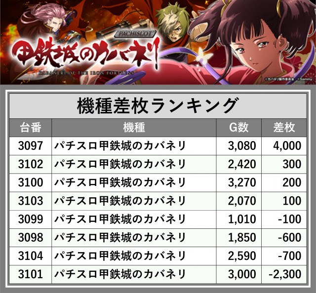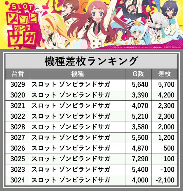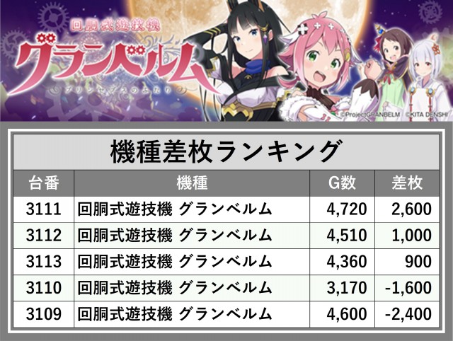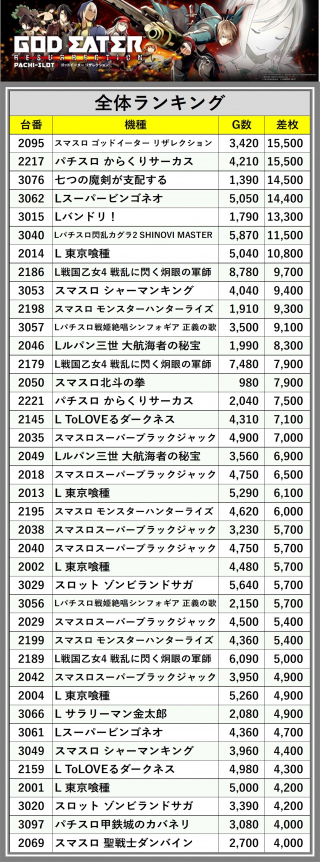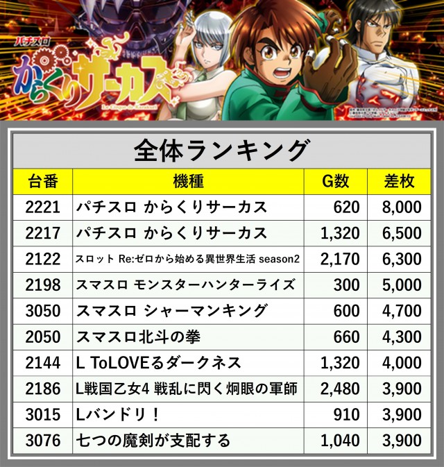 ※差枚数順に掲載しています