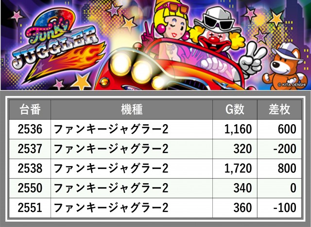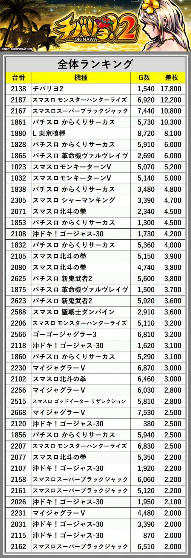 厳選された取材対象機種をはじめ、その他スロット全体から好記録が飛び出した!プレイヤーが楽しんだ1日を下記データにて振り返ってみて欲しい。