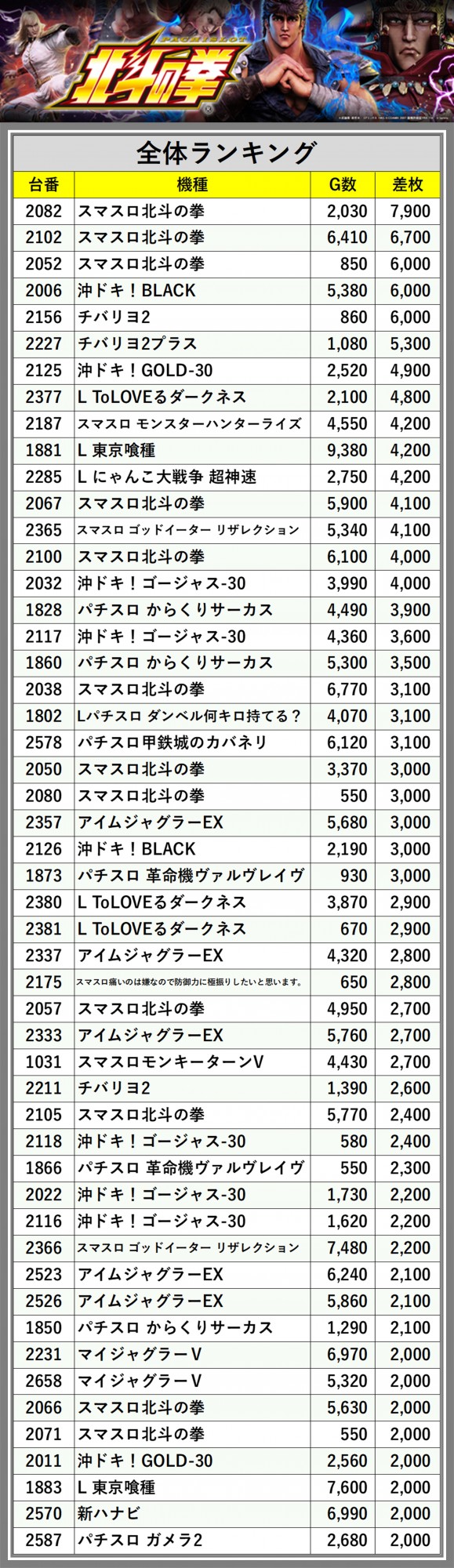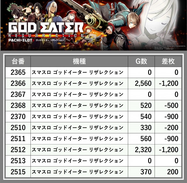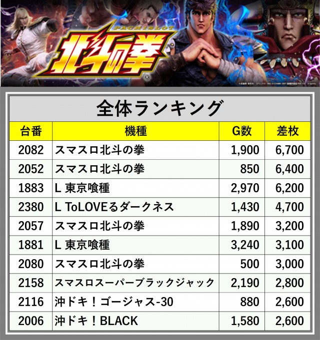厳選された取材対象機種をはじめ、その他スロット全体から好記録が飛び出した!プレイヤーが楽しんだ1日を下記データにて振り返ってみて欲しい。
