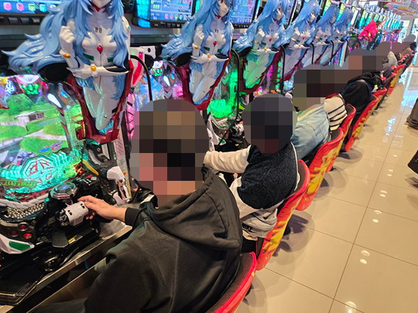 「L 東京喰種」や「L パチスロ シン・エヴァンゲリオン」、「アイムジャグラーEX」も大盛り上がり。機種の醍醐味を味わうプレイヤーを複数目にしている。