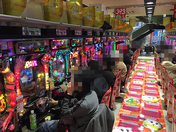高稼働となっている1円パチンコも明るいムードに包まれていた。