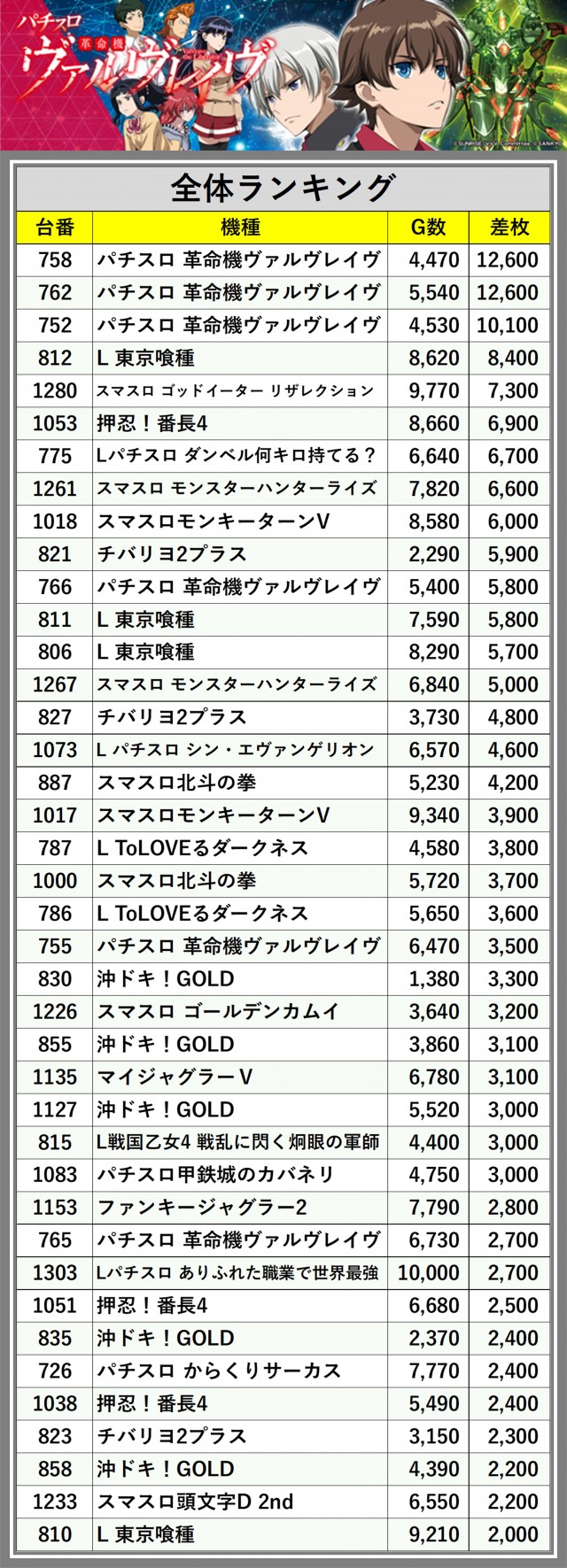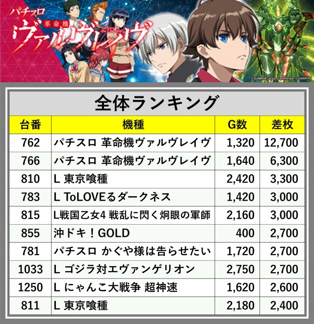 厳選された取材対象機種をはじめ、その他スロット全体から好記録が飛び出した!プレイヤーが楽しんだ1日を下記データにて振り返ってみて欲しい。