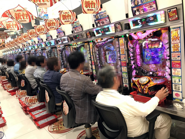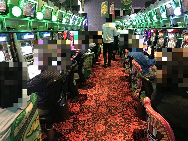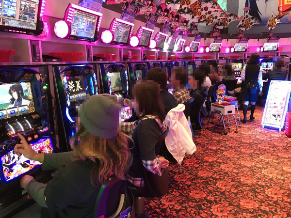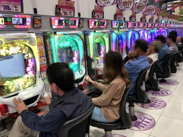 店内では、多くのプレイヤーが遊技を楽しんでおり、パチンコ・パチスロの各シマからにぎわいが感じられた。