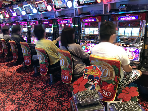 20円スロットでは「沖ドキ!-30」 が人気で、常に満台稼働状態でコーナー付近を歩く人の目を引いていた。