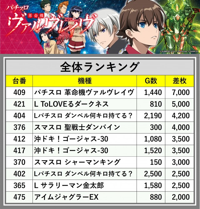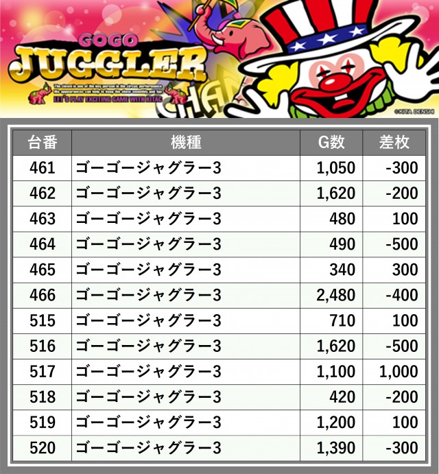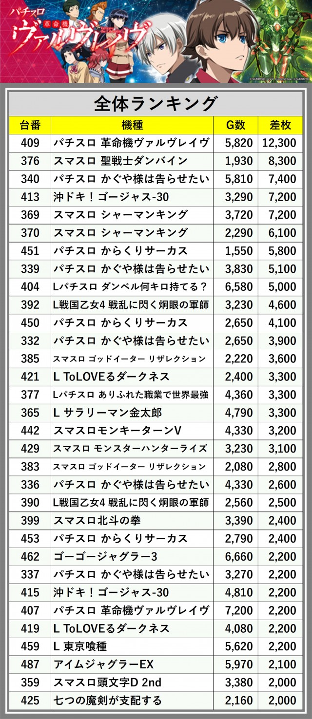 厳選された取材対象機種をはじめ、その他スロット全体から好記録が飛び出した!プレイヤーが楽しんだ1日を下記データにて振り返ってみて欲しい。