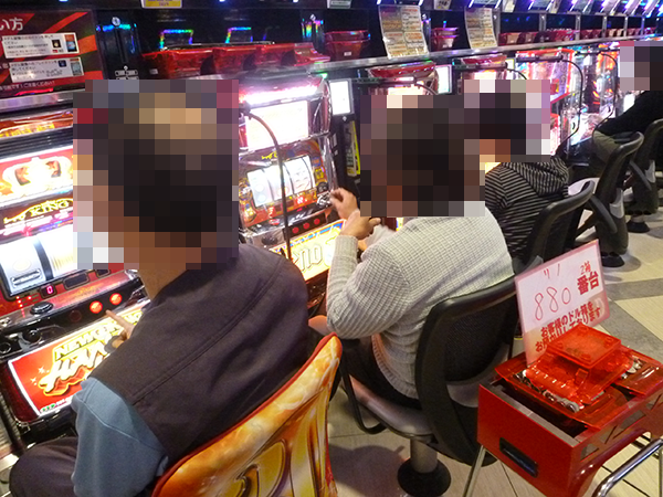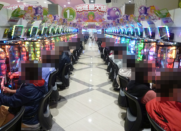 パチンココーナーに目を移すと、低貸し玉で遊技を楽しんでいるプレイヤーが多数。