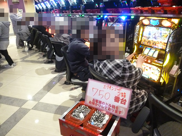 5円と1円の2種類が用意されているパチスロの低貸し玉コーナーにも、たくさんのプレイヤーが集まっていた。