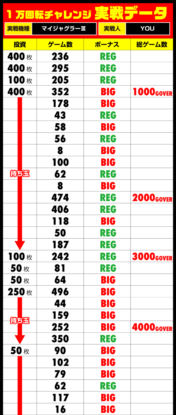 15時を超えた時点で4000G目前と、レバーを叩くスピードも早かった。