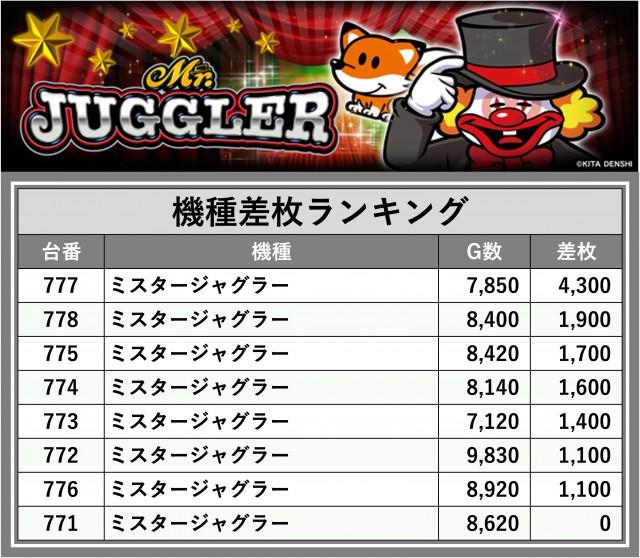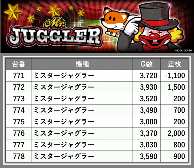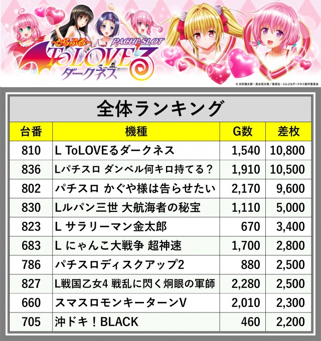 厳選された取材対象機種をはじめ、その他スロット全体から好記録が飛び出した!プレイヤーが楽しんだ1日を下記データにて振り返ってみて欲しい。
