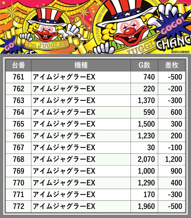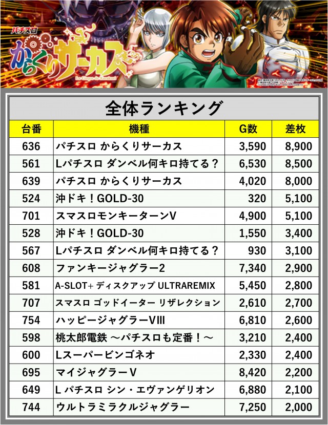 ※差枚数順に掲載しています