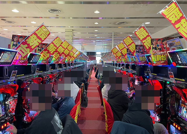 この日も朝から大勢のプレイヤーが来店しており、開店直後は最新機種が人気を集めていた。