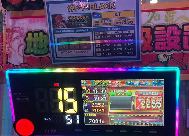 「沖ドキ!BLACK」も複数台が2,000ptオーバーと、沖スロの活躍も目立っていた。