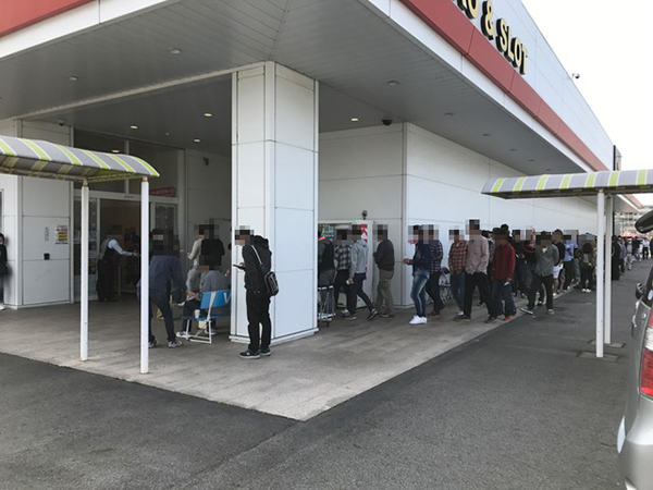 朝イチはおよそ300名のプレイヤーが入店を心待ちにしており、遊技にかける熱意とホールに対する期待感が感じ取れた。