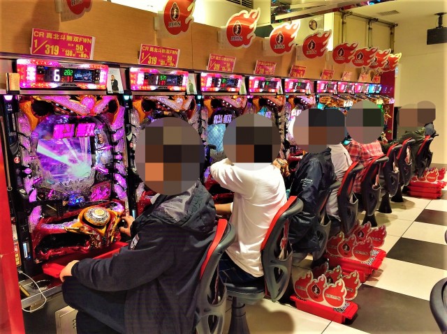 14時を過ぎたころの4円パチンコにおいて、ひときわ目立つ盛り上がりとなっていたのが「CR大海物語スペシャル」や「CRスーパー海物語IN沖縄4」などの海物語シリーズ。理想的ともいえる展開に笑みを浮かべているプレイヤーも多かった。