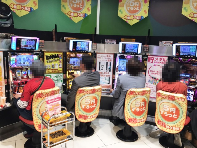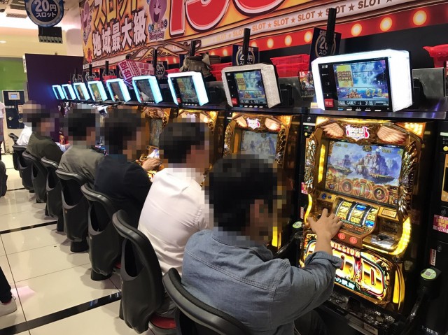 20円パチスロに目を移すと、「パチスロ モンスターハンター 月下雷鳴」や「忍魂 ~暁ノ章~」などがにぎやかな状況で、満足そうな表情を見せるプレイヤーが続出。