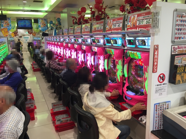 1円パチンココーナーでは、うれしそうな笑みを浮かべる姿も多く、明るい雰囲気に包まれていた。