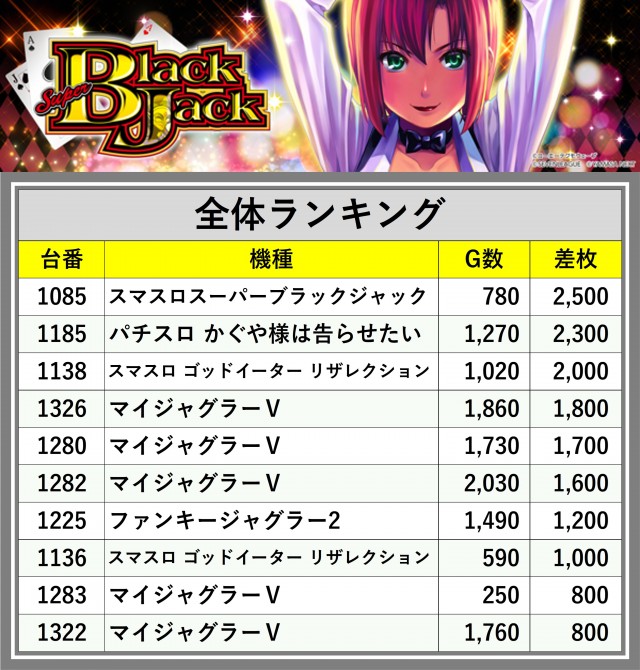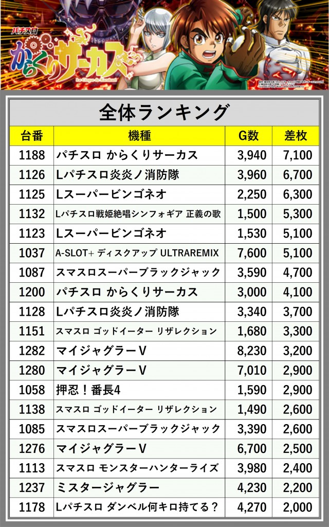 ※差枚数順に掲載しています