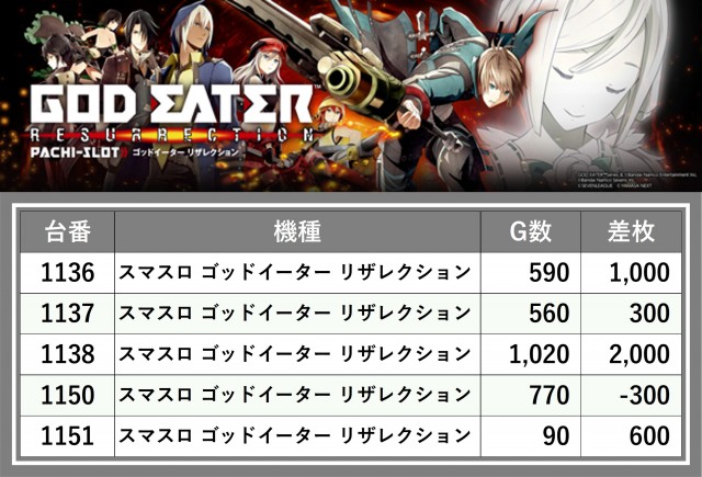 厳選された取材対象機種をはじめ、その他スロット全体から好記録が飛び出した!プレイヤーが楽しんだ1日を下記データにて振り返ってみて欲しい。