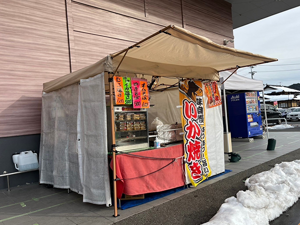 取材時は店外にいか焼き・たこ焼き・焼きそばの屋台が設けられており、プレイヤーたちの小腹を満たしていた。