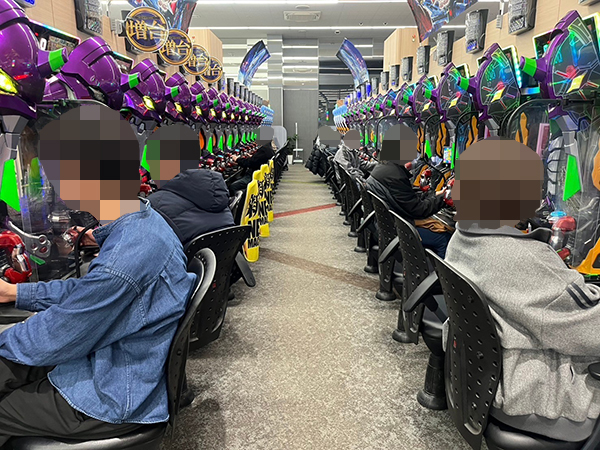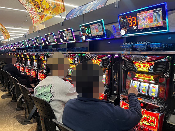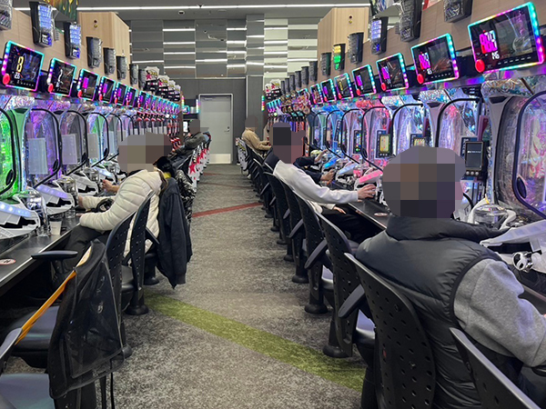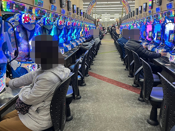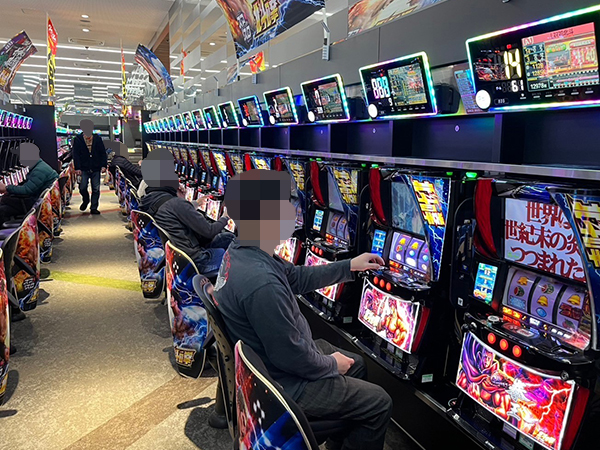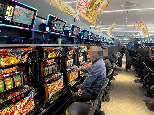 取材時は既に多くのプレイヤーが集結し、パチンコ・パチスロを問わずにぎやかな状況となっていた。