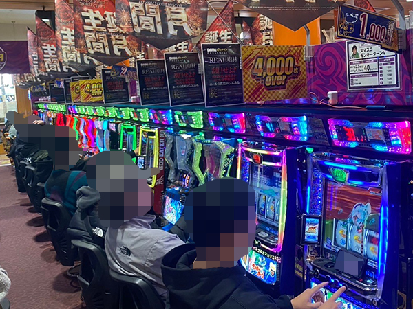 「スマスロ北斗の拳」や「マイジャグラーⅤ」、「アイムジャグラーEX」も活況の様子。機種のポテンシャルを最大限に発揮したプレイヤーを目撃している。
