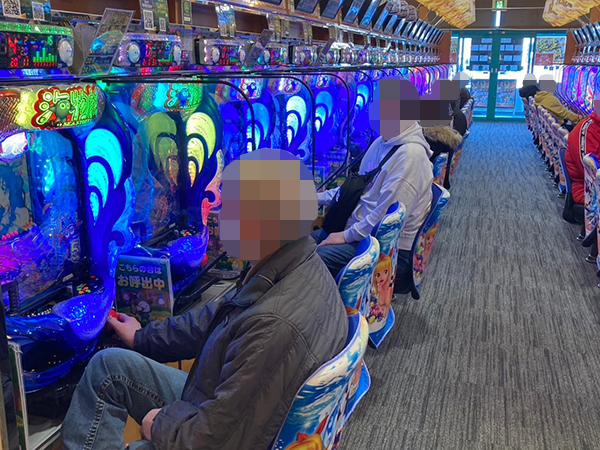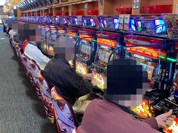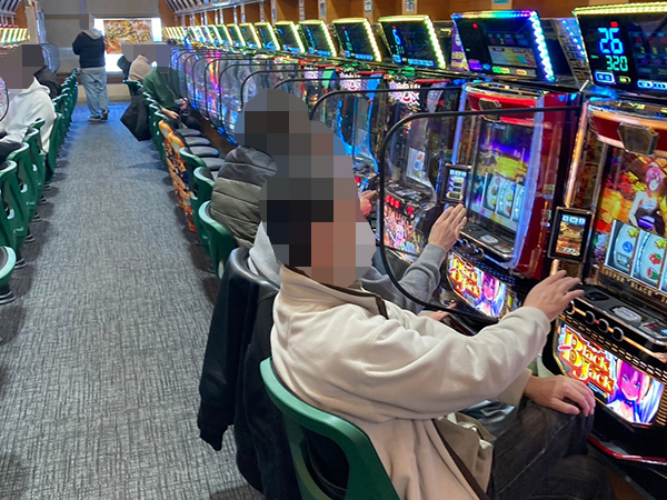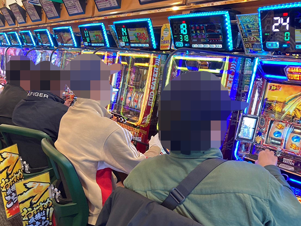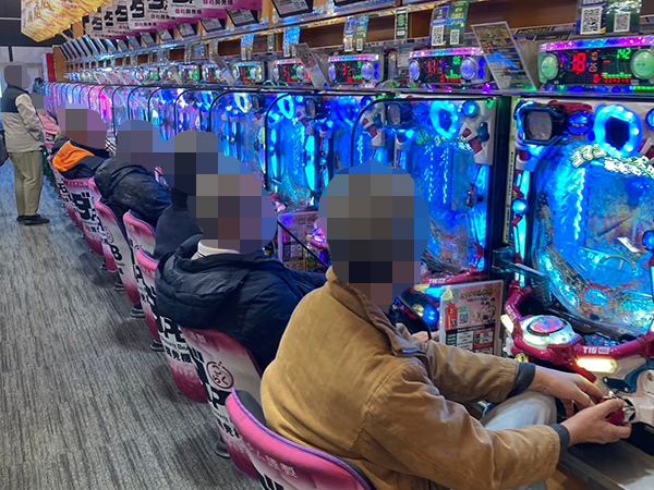 取材時は既に多くのプレイヤーが集結し、パチンコ・パチスロを問わずにぎやかな状況となっていた。