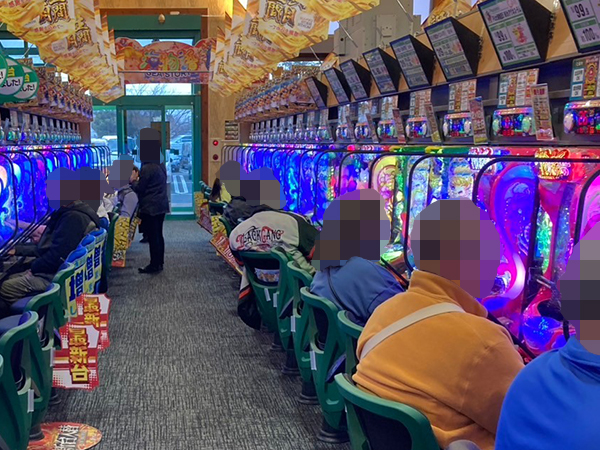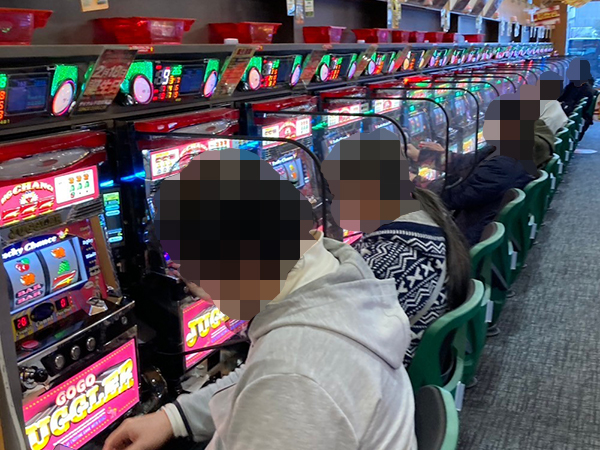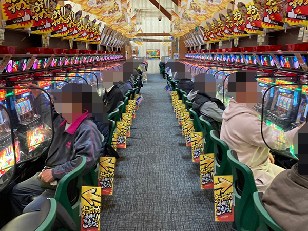 取材時は既に多くのプレイヤーが集結し、パチンコ・パチスロを問わずにぎやかな状況となっていた。