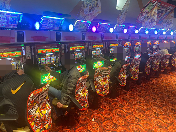 「アイムジャグラーEX」や「マイジャグラーⅤ」、「パチスロ かぐや様は告らせたい」では、機種の魅力を堪能するプレイヤーを確認。シマ中に明るい雰囲気が広がっていた。