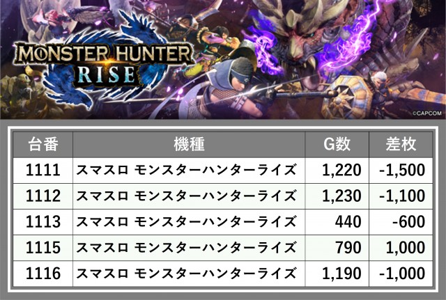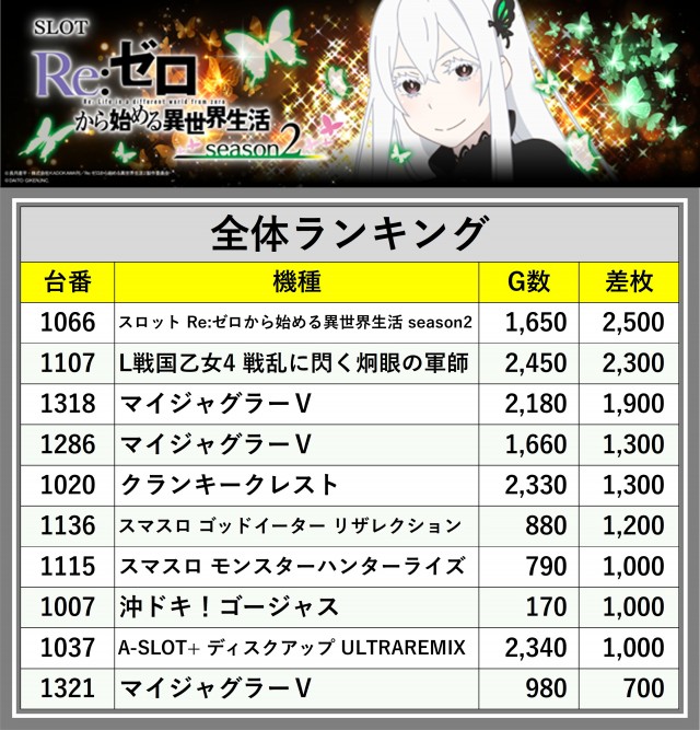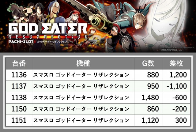 厳選された取材対象機種をはじめ、その他スロット全体から好記録が飛び出した!プレイヤーが楽しんだ1日を下記データにて振り返ってみて欲しい。