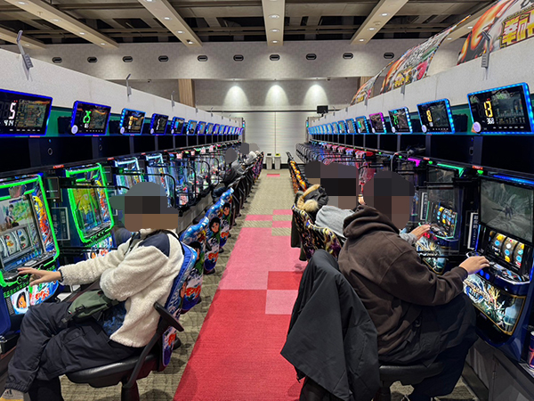 「スマスロ モンスターハンターライズ」や「スマスロモンキーターンV」、「スマスロスーパーブラックジャック」なども盛況の様子。魅力的なシーンが至る所で見られた。