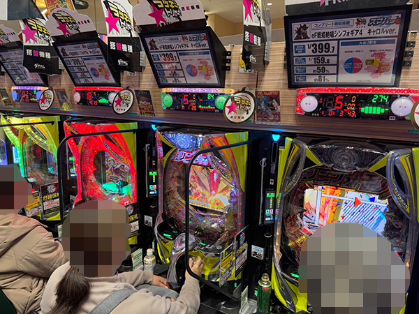17時ごろの2円パチンコでは、「eフィーバー戦姫絶唱シンフォギア4 キャロルver.」や「eフィーバーからくりサーカス2 魔王ver.」でプレイヤーが華麗なパフォーマンスを披露。微笑ましいシーンを目にしている。