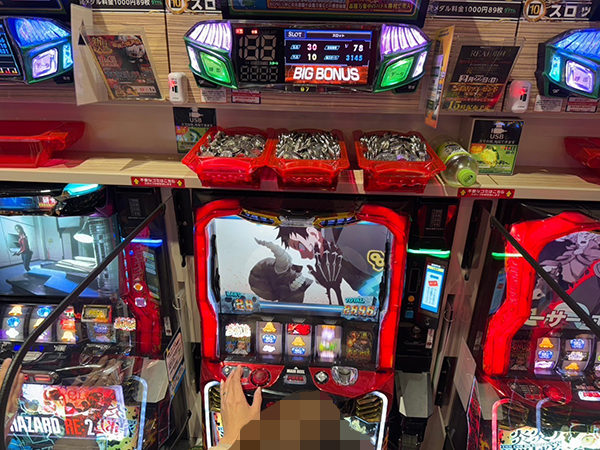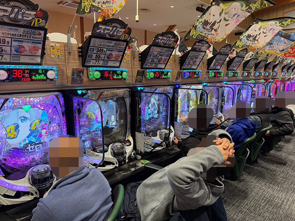 500円/89枚パチスロの稼働も高い。楽しそうにレバーを叩くプレイヤーの姿を複数目撃している。