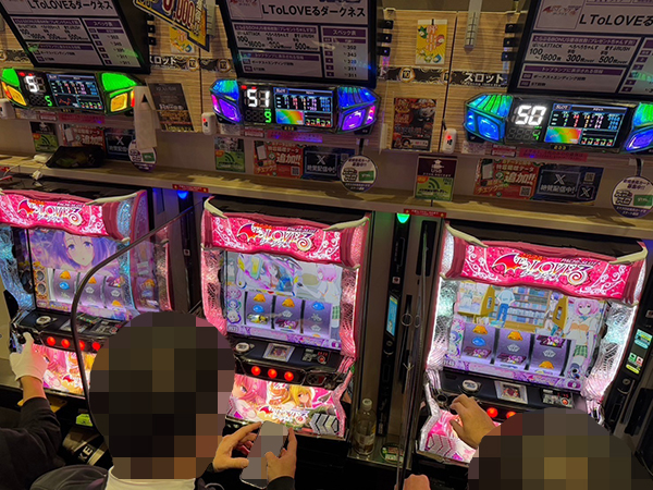 1000円/89枚パチスロをチェックすると「L ToLOVEるダークネス」や「スマスロ モンスターハンターライズ」で好調なプレイヤーを確認。納得の表情がそこかしこで見られた。