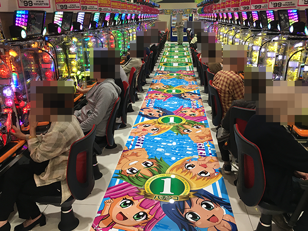 海物語シリーズを中心にさまざまな機種が支持を受けており、シマ全体に楽しそうな光景が広がっていた。