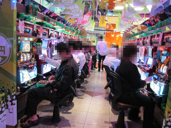 「押忍!サラリーマン番長」や「アナザーゴッドハーデス」など、人気機種を取り揃えた10円パチスロも盛況だった。