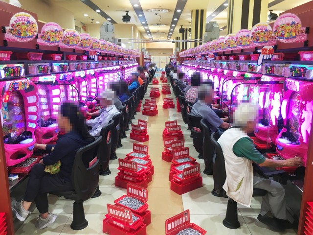 また、各台計数機が導入されている1円パチンコにも多くのプレイヤーが集合。設備のおかげで遊技に集中できるようで、心からパチンコを楽しんでいた。