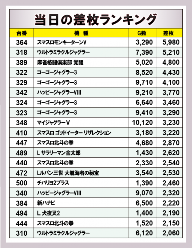 ※記事内の差枚表記はぱちタウン独自調査に基づくものです。ご了承ください。