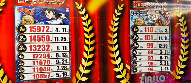 以上が2月27日に実施された「英雄のリアル」の結果である。15,000枚オーバーを筆頭に、9,000枚超え2台、8,000枚達成が1台と素晴らしいランキングとなった。2月もハイペースで実施されてきた同店であるが、これ以上ない締めくくりになったといえるだろう。次回以降への期待にあふれながら、帰途につくファンの様子が印象に残っている。今後も同店には足繁く通いつつ、動向をチェックしながら上手に立ち回ろう!