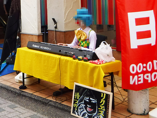 この日は電子ピアノを弾くピエロが店頭でお出迎え。さらに、氷柱を飾って涼を感じさせる試みなど、他店と比べ特徴あるサービス&パフォーマンスが印象的だった。