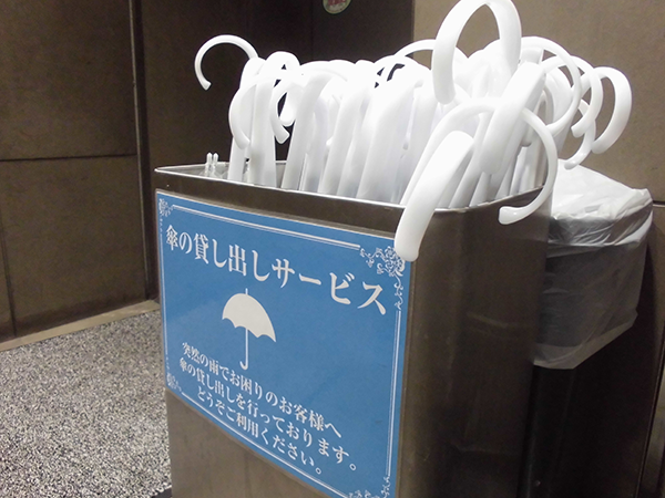 自由に飲めるアルカリイオン水や雨が降っているときに貸し出される傘など、優れたサービスも充実。
