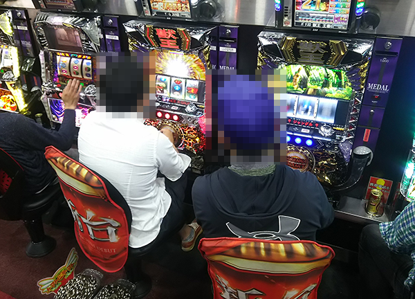 午後の20円パチスロをみると、「ミリオンゴッド-神々の凱旋-」や「アナザーゴッドハーデス」、「押忍!番長3」などに華やかな光景が広がっていた。