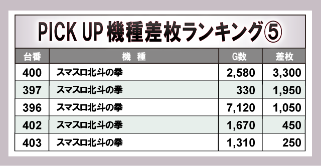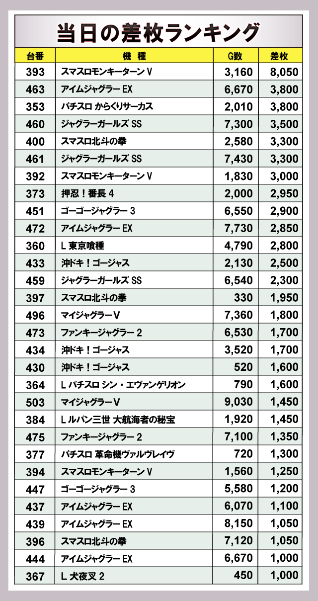 ※差枚数順に掲載しています。