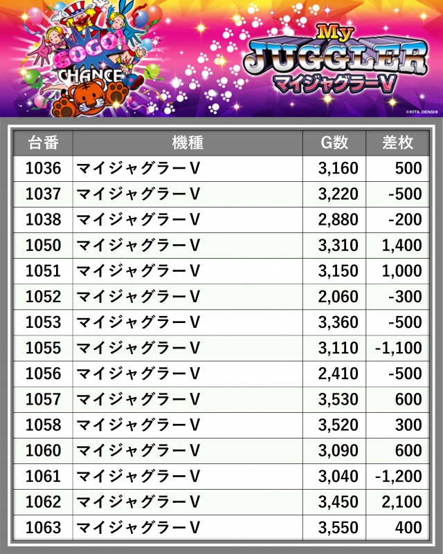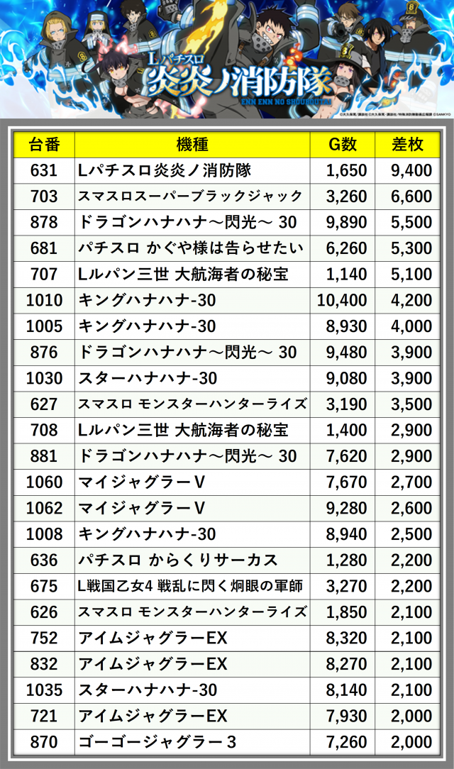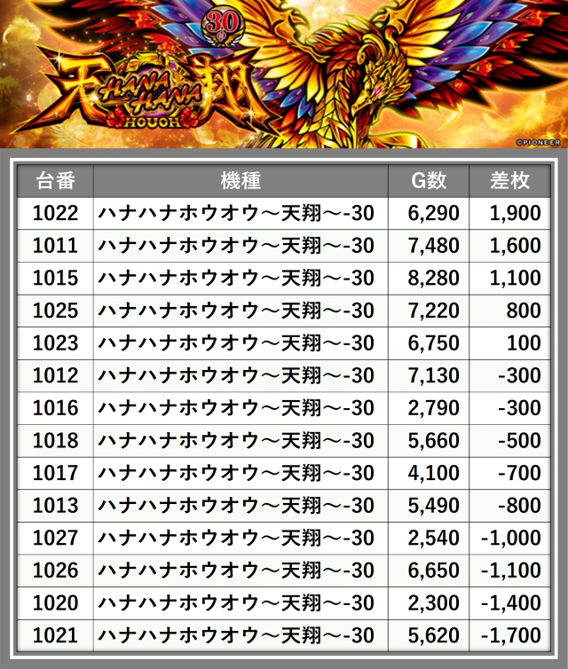 ※台番順に掲載しています
