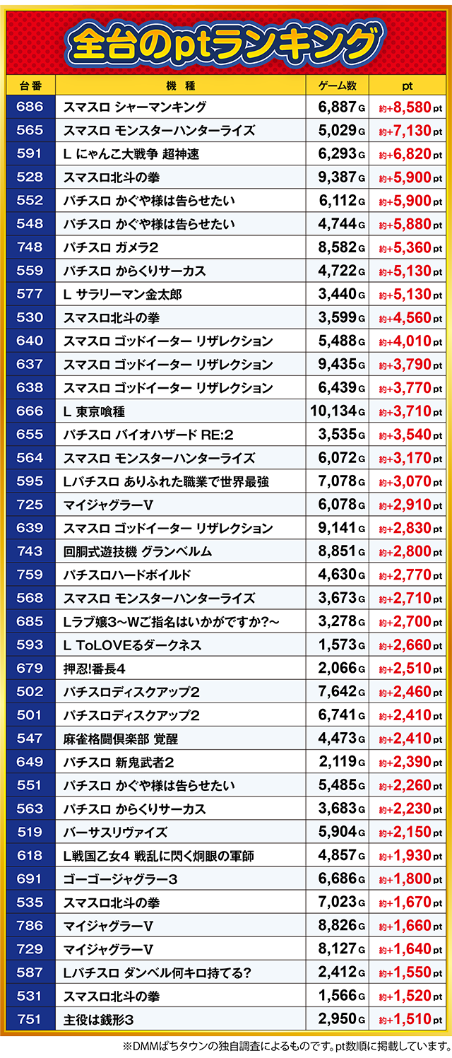 PaPaOne・全台ptランキング