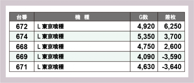 ※差枚数順に掲載しています