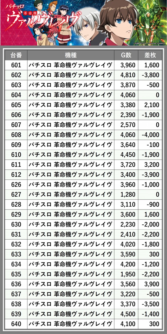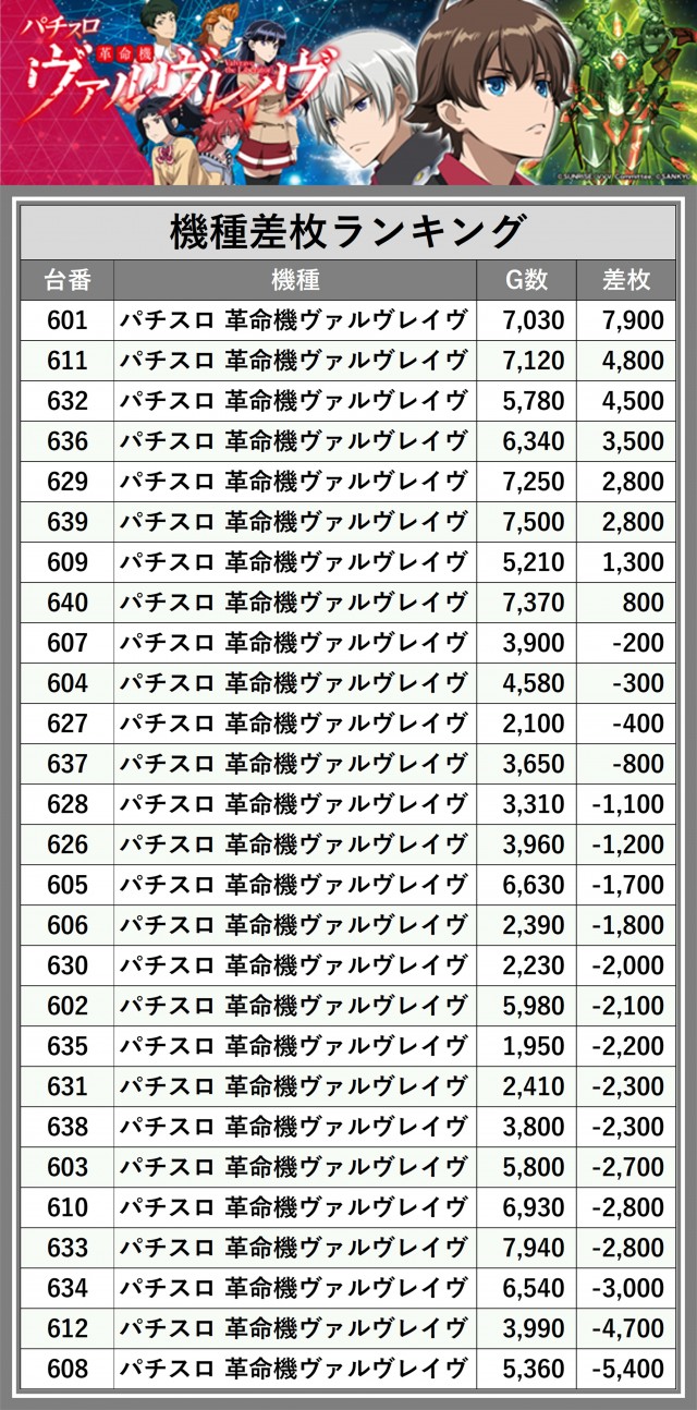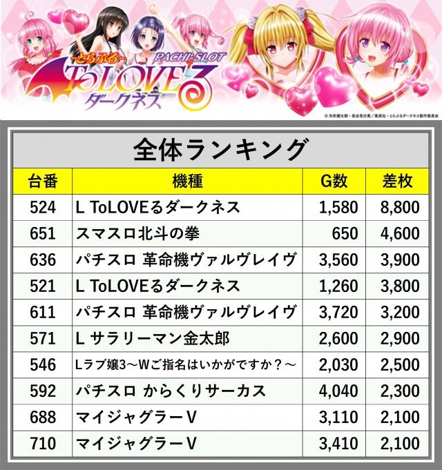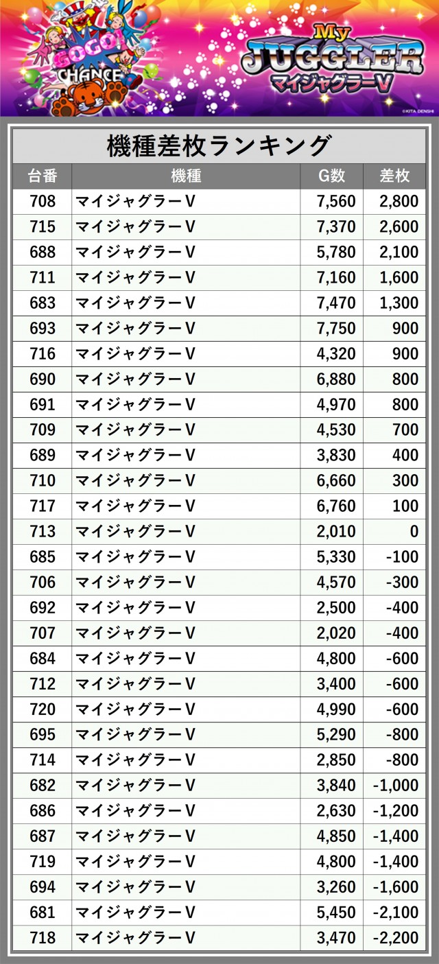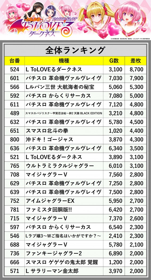※差枚数順に掲載しています