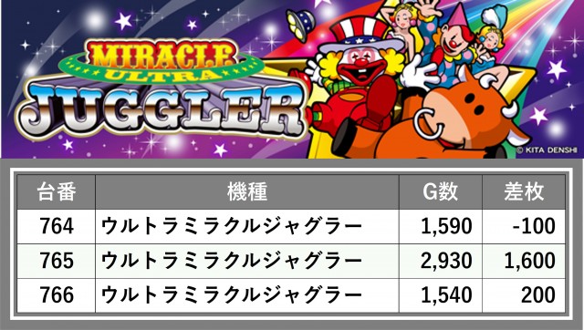 厳選された取材対象機種をはじめ、その他スロット全体から好記録が飛び出した!プレイヤーが楽しんだ1日を下記データにて振り返ってみて欲しい。