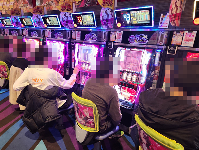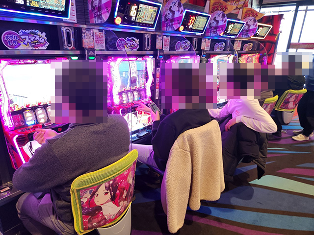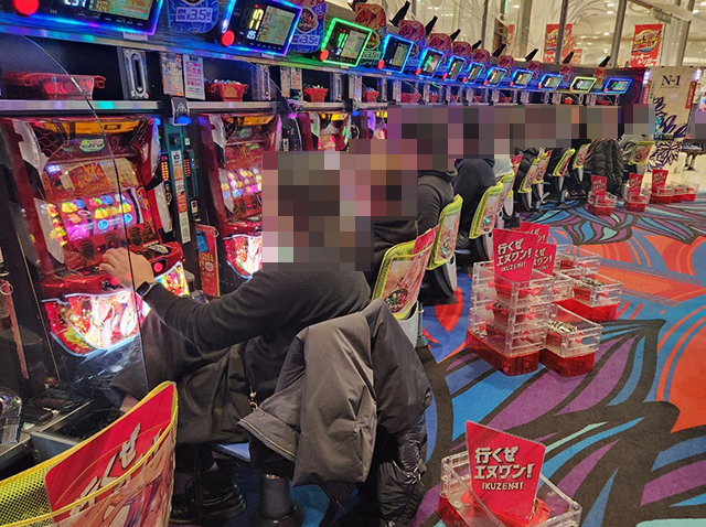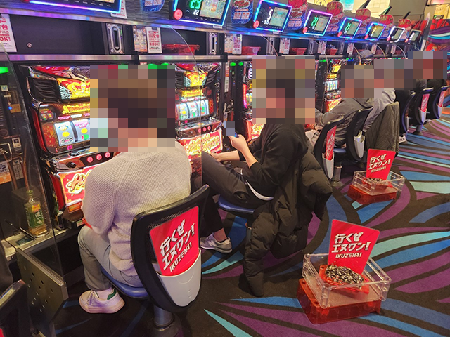 パチンコとパチスロのどちらにも笑顔で遊技をおこなっているプレイヤーがおり、決意を感じられる光景が広がっていた。