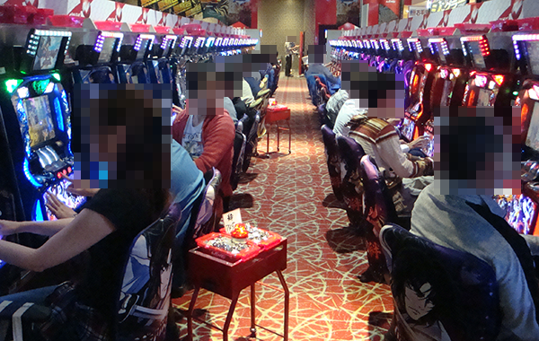 14時をまわった頃の20円パチスロをみると、「バジリスク~甲賀忍法帖~絆」に華麗なパフォーマンスを披露するプレイヤーを目撃。明るい表情からは、心から楽しめている様子がうかがえた。