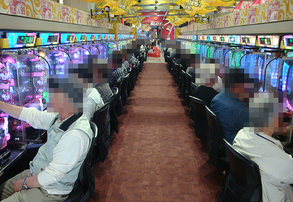 海物語シリーズを筆頭に、さまざまな機種に遊技を楽しむプレイヤーの姿があった。